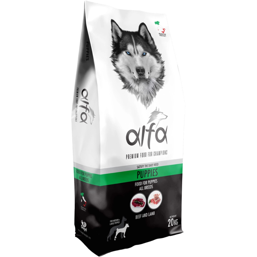 Az Alfa Puppy eledel minden fajtájú, közepes és nagy kutyus számára. Teljes értékű és kiegyensúlyozott takarmány, a növekedéshez optimális előkészítést igénylő kölyökkutyák számára, 15 hónapos korig alkalmas. Az Alfa Puppies egy magas tápértékű termék, amely teljes értékű és kiegyensúlyozott táplálékot kínál a kölyökkutya táplálkozásához és jólétéhez szükséges fehérjék, zsírok, szénhidrátok, vitaminok és ásványi anyagok optimális ellátásának köszönhetően.