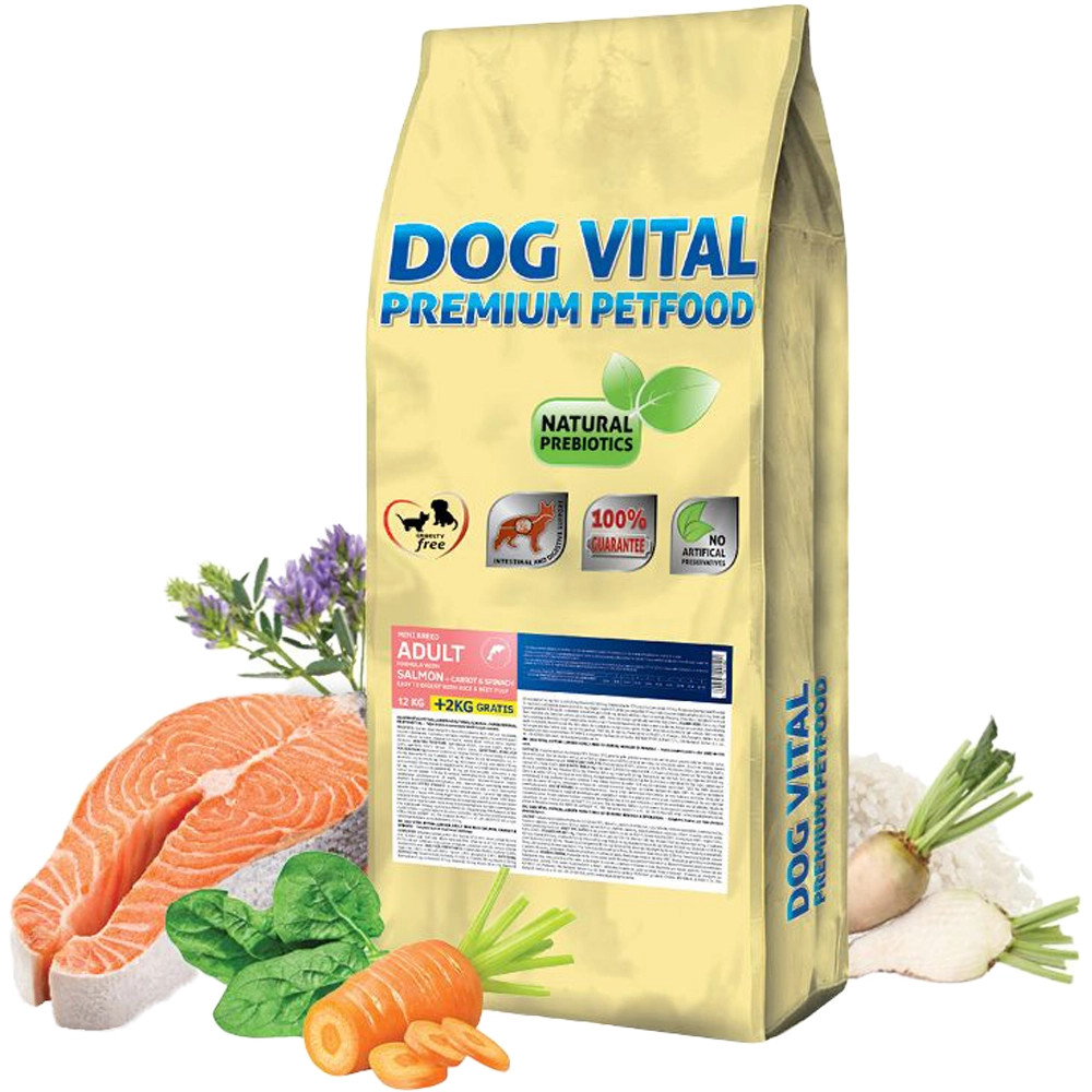 A Dog Vital Hypoallergen Adult Mini lazaccal, sárgarépával és spenóttal hipoallergén, teljes értékű szárazeledel kistestű felnőtt kutyáknak. A fő fehérjeforrás a lazac, amely magas biológiai értékű fehérjét és természetes omega-3 zsírsavakat biztosít, támogatva a bőr és a szőrzet állapotát, valamint az ízületek egészségét.