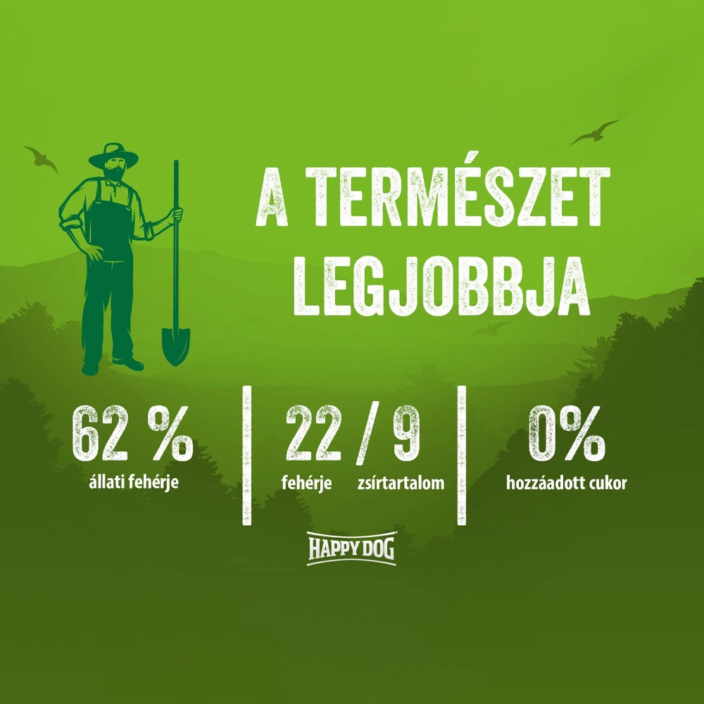Happy Dog NaturCroq Száraz Kutyatáp (Bárány és Rizs)• Főként regionális alapanyagok• Könnyen emészthető• Kiegyensúlyozott fehérje-válogatás• Gyomor- és bélbarátKönnyen emészthető természetes eledel báránnyal és rizzsel, felnőtt kutyáknakÉrzékeny a kutyád gyomor- és bélrendszere? Akkor imádni fogja a Happy Dog NaturCroq Lamm & Reis-t, az egészséges teljes értékű eledelt a legjobb bajor alapanyagokból. Az ízletes, kemény tápszemek kizárólag kiváló minőségű alapanyagokat tartalmaznak, például könnyen emészthető bárányhúst, nagyon jól emészthető rizst és egészséges, a régióból származó teljes kiőrlésű gabonát. A bárány kiváló minőségű állati fehérjét biztosít kedvencednek, a rizs pedig nagyon jó gyomor- és bélbarát szénhidrátforrás. A teljes kiőrlésű gabonából készült termékek fontos élelmi rostokat biztosítanak. Ezenkívül szabályozzák a bélműködést, telítenek és elősegítik az emésztést. Ezáltal támogathatják a bélrendszer egészségét. Számos B-vitamint, ásványi anyagot, például magnéziumot, vasat, szelént és cinket is tartalmaznak, és tele vannak összetett szénhidrátokkal. Az ízletes receptet értékes bajor gyógynövényekkel egészítettük ki, amelyek természetes módon számos értékes tápanyaggal látják el négylábú kedvenced. Ez a kiegyensúlyozott szárazeledel ideális minden fajta felnőtt, normál aktivitású, gyomor- és bélrendszeri érzékenységre hajlamos kutya számára, mivel a bárányhús és rizs etetése sikeresnek bizonyult az ilyen kutyák esetében.Összetétel:Baromfifehérje*, búzaliszt, teljes kiőrlésű búza, teljes kiőrlésű kukorica, kukoricaliszt, bárányfehérje* (8,5 %), rizs (8,5 %), teljes kiőrlésű árpa, olajok és zsírok, hidrolizált fehérje, halliszt, melaszos cukorrépaszelet* (cukormentesített), almatörköly* (0,7 %), élesztő*, kálium-klorid, nátrium-klorid, zöld zab*, napraforgó* (0,08 %), zsázsa*, petrezselyem*, (zöldfűszerek összesen: 0,3 %)*szárítottAnalitikai összetevők:Nyersfehérje 22,0 %, nyerszsír 9,0 %, nyersrost 3,0 %, nyershamu 6,5 %, kalcium 1,5 %, foszfor 1,0 %, nátrium 0,25 %, omega-6 zsírsavak 2,2 %, omega-3 zsírsavak 0,2 %Adalékanyagok:Vitaminok / kg:A-vitamin (3a672a) 15000 NE, D3-vitamin (3a671) 950 NENyomelemek / kg:vas (3b103) 55 mg, réz (3b405) 12 mg, cink (3b603) 95 mg, mangán (3b502) 10 mg, jód (3b202) 2,5 mg, szelén (3b801) 0,17 mgAntioxidáns:növényi olajokból származó tokoferol-kivonatok 1b306(i)