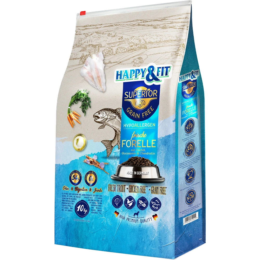 Happy&Fit Superior Gabonamentes Hipoallergén Száraz Kutyatáp (Friss Pisztráng, Halolaj, Glüközamin és Kondroitin) - 10 kg