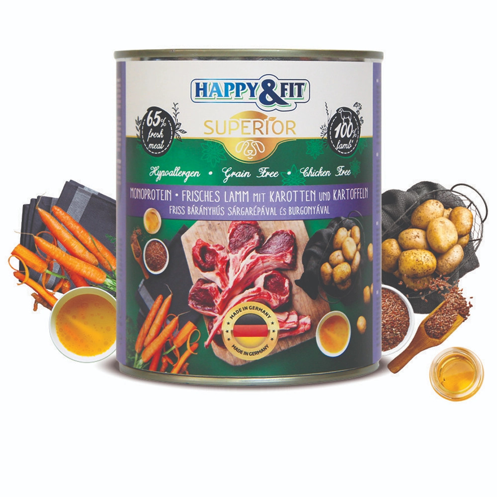 Happy&Fit Superior Konzerv Kutyáknak (Friss Bárányhús, Sárgarépa és Burgonya) -  800 g