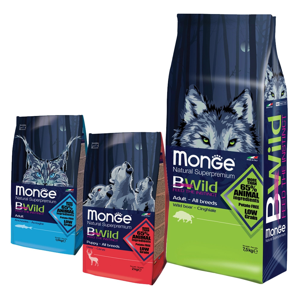 A Monge Natural Superpremium BWild felnőtt alacsony gabonatartalmú száraz vaddisznó egy teljes értékű és kiegyensúlyozott állateledel felnőtt kutyák számára. A vaddisznóhúsból származó magas állati fehérjetartalom garantálja a kiegyensúlyozott étrendet, amely követi az állatok természetes ösztöneit. A receptúra alacsony gabona-szinttel készült, és nem tartalmaz burgonyát. A lenmag, az omega-3 zsírsavak forrása támogatja a puha és fényes szőrzetet.