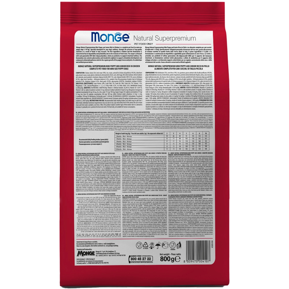 Teljes értékű állateledel kistestű (<10 kg) felnőtt kutyák számára csirkével. A kiváló minőségű alapanyagoknak és az olasz kutatómunkának köszönhetően egészséges táplálkozást biztosít kutyájának. A termék fő összetevője a csirke, amely könnyen emészthető és a friss hús hozzáadásának köszönhetően nagyon ízletes. Nem tartalmaz mesterséges színezéket és tartósítószert.