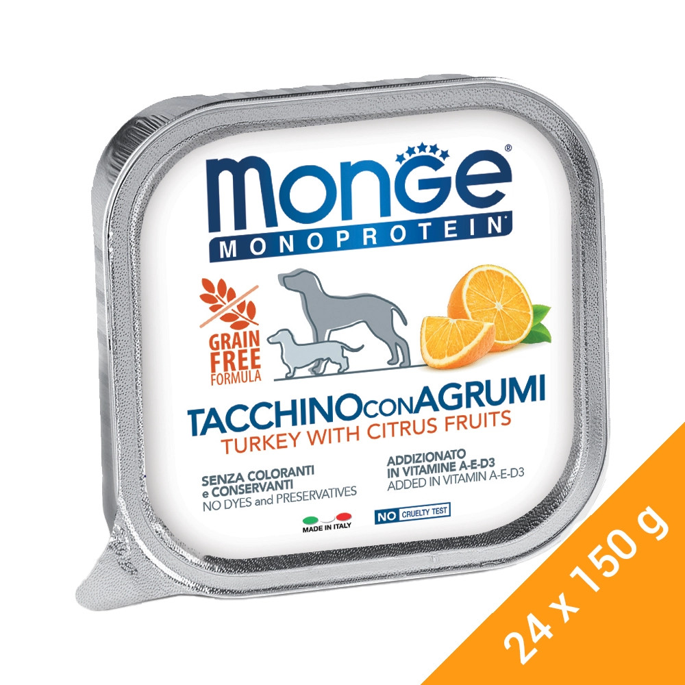 Monge Monoprotein Fruits Pate Alutálcás Kutyaeledel (Pulyka és Citrus) - 24x150 g