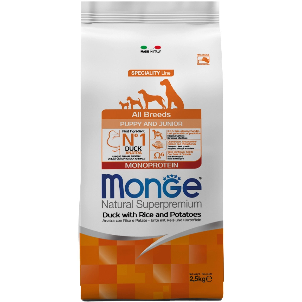 Monge Speciality Line Puppy & Junior Monoprotein Száraz Kutyatáp (Kacsa, Rizs és Burgonya) - 2,5 kg