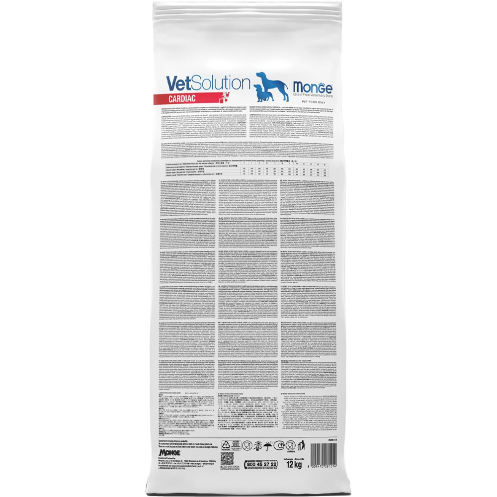 A Monge VetSolution Cardiac Canine egy teljes értékű diétás táplálék kutyák számára, amely krónikus szívelégtelenség esetén támogatja a szív működését. Tartalmaz dinnye koncentrátumot a szabad gyökök semlegesítésére, ginsenget a szív működésének támogatására és xilo-oligoszacharidokat (XOS) a bélflóra védelmére. A készítmény alacsony nátriumtartalommal rendelkezik.