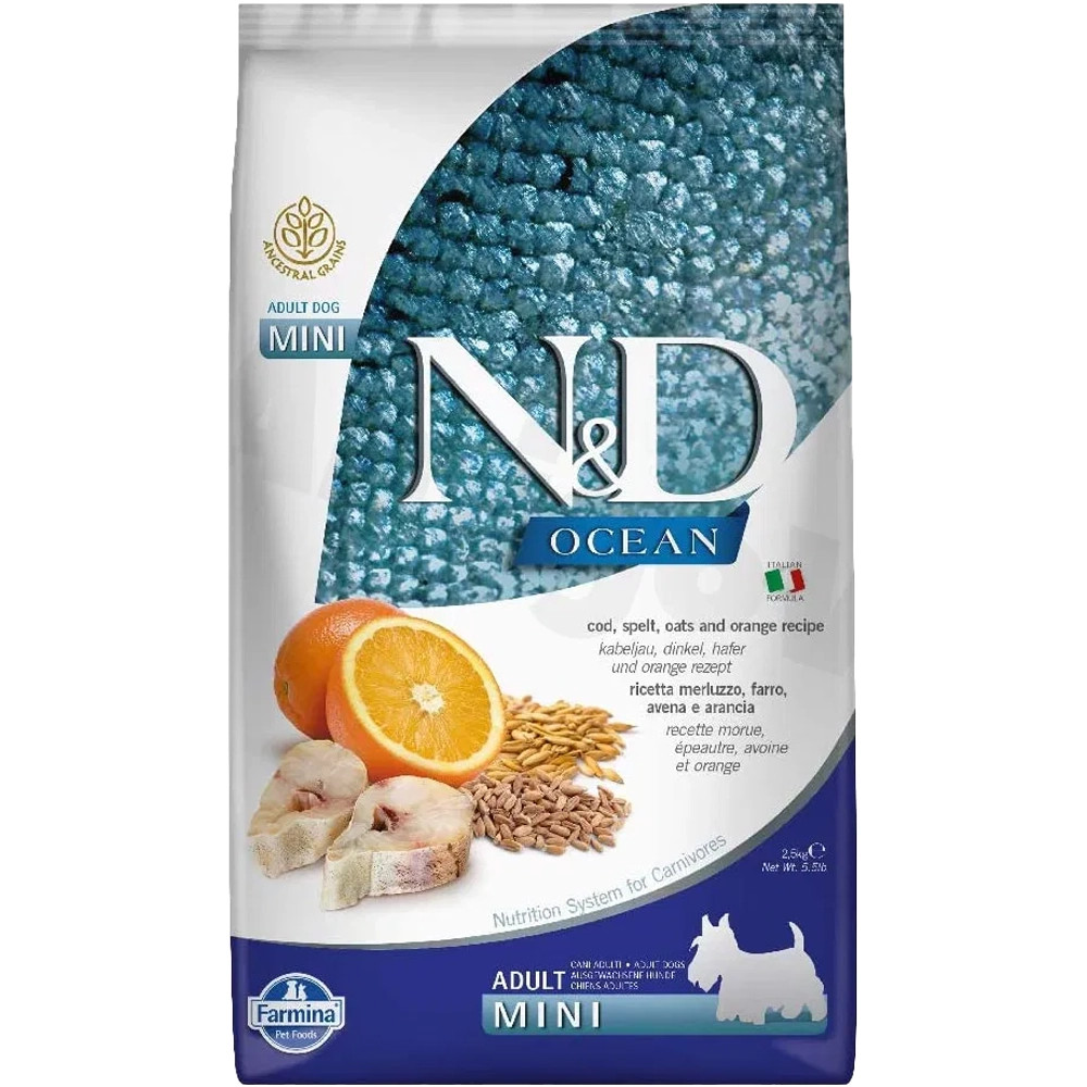 N&D Ocean Mini Adult Monoprotein Száraz Kutyatáp (Tőkehal, Tönköly, Zab és Narancs) Tönköly, zab, tőkehal, narancs. Teljes értékű eledel felnőtt, mini testméretű kutyák részére.Összetétel: Friss tőkehal (24%), dehidratált tőkehal (24%), halolaj, tönköly (10%), zab (10%), szárított cukorrépapép, növényi rost borsóból, szárított sárgarépa, szárított lucerna, inulin, frukto-oligoszacharidok, mannán-oligoszacharidok, dehidratált édes narancs (0,5%), dehidratált alma, gránátalma por, spenót por, utifűmag (0,3%), feketeribizli por, szárított áfonya, nátrium-klorid, szárított sörélesztő, kurkuma gyökér (0,2%), glükozamin, kondroitin-szulfát, körömvirág kivonat (lutein forrás)Analitikai összetevők: Nyersfehérje:30,00%, nyers olajok és zsírok:18,00%, nyersrost:2,90%, nyershamu:6,90%, kálcium:1,20%, foszfor:0,90%, Omega-6:1,60%, Omega-3:2,30%, DHA:1,00%, EPA:0,70%, glükozamin:1200mg/kg, kondroitin:900mg/kg Táplálkozási adalékanyagok/kg:A-vitamin:15000NE, D3-vitamin:1500NE, E-vitamin:600mg, C-vitamin:150mg, niacin:37,5mg, pantoténsav:15mg, B2-vitamin:7,5mg, B6-vitamin:6mg, B1-vitamin:4,5mg, H-vitamin:0,38mg, folsav:0,45mg, B12-vitamin:0,1mg, kolin-klorid:2500mg, béta-karotin:1,5mg, cink-kelát:910mg, mangán-kelát:380mg, vas-kelát:250mg, réz-kelát:88mg, szelenometionin:0,40mg, DL-metionin:4000mg, Taurin:1000mg, L-karnitin:300mgÉrzékszervi adalékanyagok: Aloe vera kivonat:1000mg, zöldtea kivonat:100mg, szőlőmag kivonat:100mgAntioxidánsok: Rozmaring kivonat