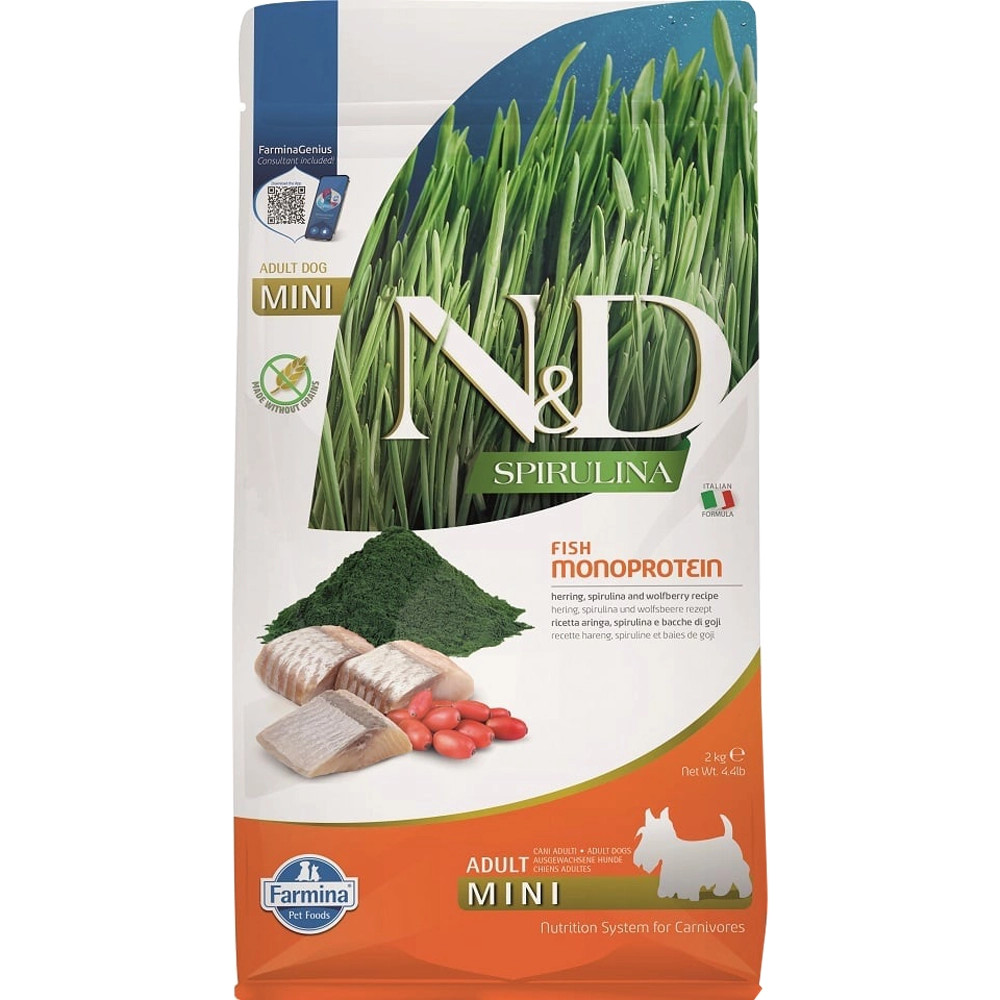 N&D Spirulina Dog Hering Adult Mini Kutyatáp egy teljes értékű gabonamentes kutyatáp kis testméretű felnőtt kutyák számára. Ínycsiklandozó heringgel, spirulinával és édesburgonyával hamar kis kedvenced kedvencévé válhat.