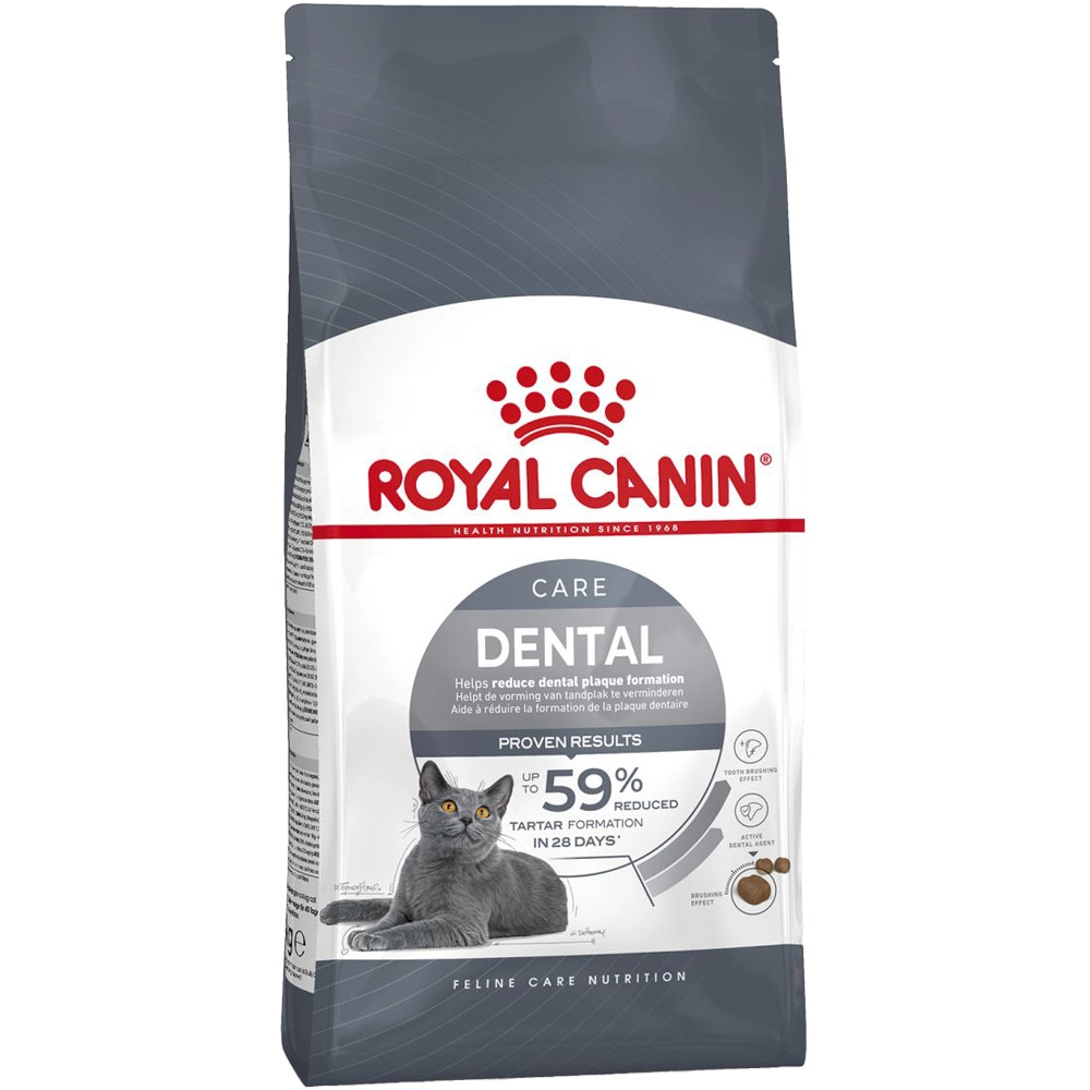 Royal Canin Dental Care Száraz Macskatáp• Segít csökkenteni a fogkőképződést• Speciális fogkefeszerű hatás• Igazolt eredményekMacskája étrendje fontos szerepet játszik az egészségében. A ROYAL CANIN Feline Care Nutrition termékcsalád olyan speciálisan összeállított tápokat tartalmaz, amelyeket a macskája által esetlegesen tapasztalt leggyakoribb érzékenységek kezelésére fejlesztettek ki.Evés után az ételmaradékok vékony lepedékréteget képeznek a fogakon. Idővel a lepedék megkeményedhet, és fogkövet képezhet, amely kezelés nélkül fogászati problémákhoz vezethet.A ROYAL CANIN Dental Care táplálkozási szempontból teljes értékű és kiegyensúlyozott összetételét kifejezetten úgy tervezték, hogy támogassa macskája fogainak egészségét és szájhigiéniáját.A ROYAL CANIN Dental Care száraz eledel fogászati hatóanyaggal van ellátva, amely megköti a macska nyálában lévő kalciumot, így segít csökkenteni a fogkő kialakulását és felhalmozódását.Sőt, a táp speciálisan kialakított, sajátos textúrájú tápszemcséi minden egyes falat megrágásával segítik a macska fogainak ápolását. Ez a fogtisztító hatás segít korlátozni a káros lepedék és fogkő felhalmozódását minden táplálkozás során.A táp ezenkívül kiegyensúlyozott arányban ásványi anyagokat is tartalmaz, hogy segítsen fenntartani felnőtt macskája húgyutainak egészséges működését.A ROYAL CANIN Dental Care igazolt eredményekkel rendelkezik. Tanulmányunk* kimutatta, hogy a táp mindössze 28 nap alatt jelentősen, akár 59%-kal csökkentette a fogkőképződést a résztvevő macskák fogain.Minden ROYAL CANIN termék kiterjedt minőség-ellenőrzési folyamaton megy keresztül, hogy a legjobb minőségű eledeleket garantáljuk. Ha macskája a ROYAL CANIN Dental Care tápot fogyasztja, teljes értékű és kiegyensúlyozott táplálékot kap.*A Royal Canin belső tanulmányaÖsszetétel: Dehidratált baromfifehérje, rizs, búzaglutén*, állati zsiradékok, kukorica, kukoricaliszt, növényi rostok, hidrolizált állati fehérjék, búza, kukoricaglutén, ásványi anyagok (ezen belül pentanátrium-trifoszfát (0,2 %)), répapép, halolaj, szójaolaj, frukto-oligoszacharidok, psyllium (útifű) maghéj és mag*L.I.P.: kitűnően emészthető, válogatott fehérjeAnalitikai összetevők: Nyersfehérje: 30,0 %, Zsírtartalom: 15,0 %, Nyershamu: 7,1 %, Nyersrost: 5,3 %Tápértékkel rendelkező adalékanyagok/kg: A-vitamin: 14000 NE, D3-vitamin: 700 NE, Vas (3b103): 35 mg, Jód (3b201, 3b202): 3,5 mg, Réz (3b405, 3b406): 11 mg, Mangán (3b502, 3b504): 45 mg, Cink (3b603, 3b605, 3b606): 133 mg, Szelén (3b801, 3b811, 3b812): 0,06 mg, Antioxidánsok