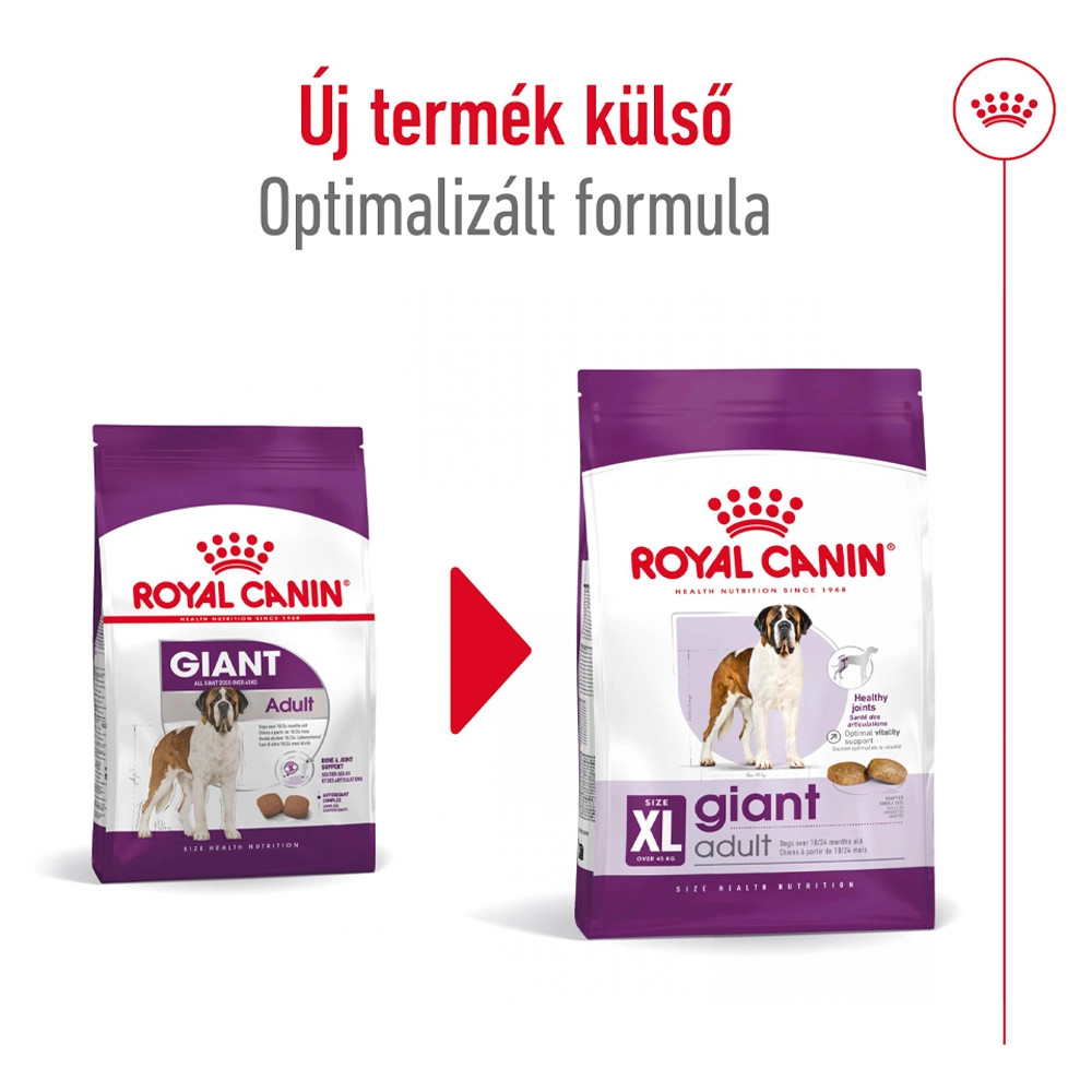 A ROYAL CANIN Giant Adult egy táplálási szempontból teljes értékű és kiegyensúlyozott formula, amelyet kifejezetten óriás testű kutyája sajátos igényeinek kielégítésére, illetve a felnőttkori évei alatt történő támogatására terveztek.
