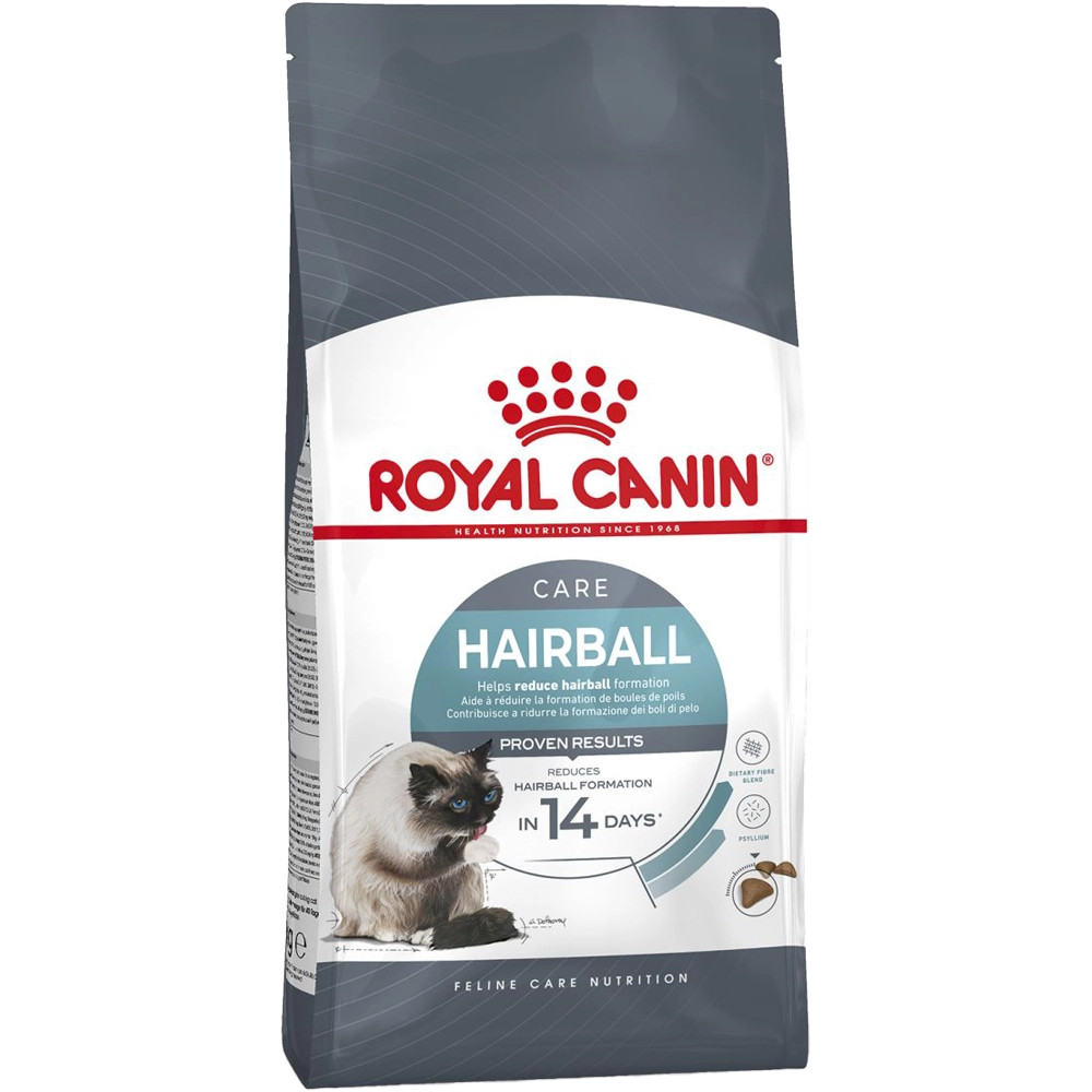 A ROYAL CANIN Hairball Care táplálkozási szempontból teljes értékű és kiegyensúlyozott összetételét kifejezetten a szőrlabdaképződés csökkentésére tervezték.