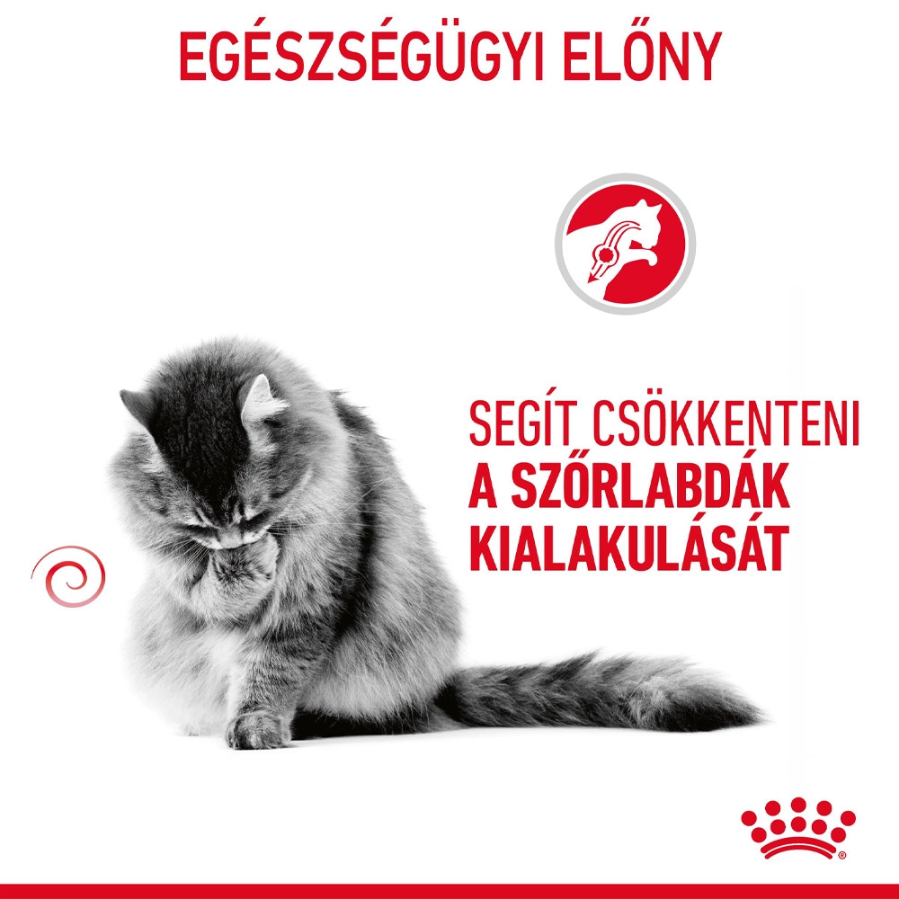 A ROYAL CANIN Hairball Care táplálkozási szempontból teljes értékű és kiegyensúlyozott összetételét kifejezetten a szőrlabdaképződés csökkentésére tervezték.