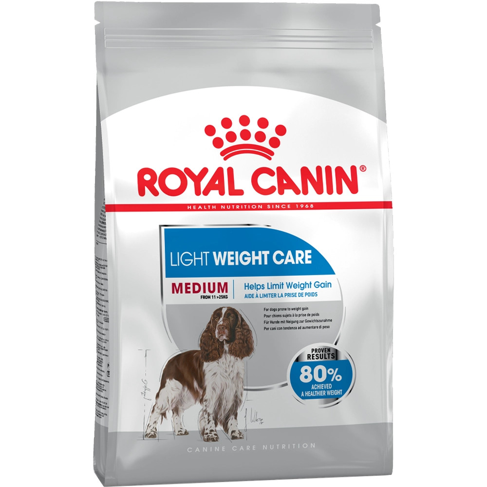A 11 kg és 35 kg közötti testsúlyú kutyák számára alkalmas ROYAL CANIN Light Weight Care Medium segít kutyájának abban, hogy továbbra is könnyen álljon a mancsain.