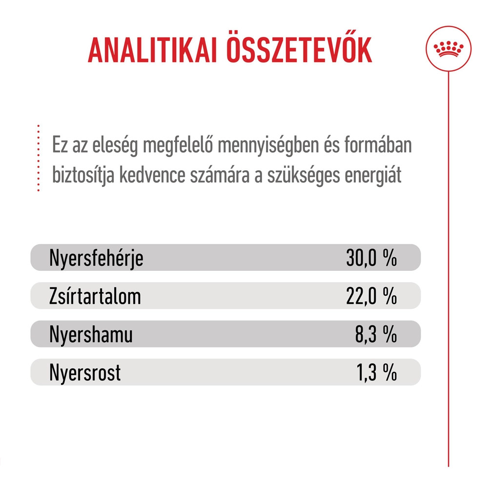 Royal Canin Medium Starter Mother & Babydog (11-25 kg) Száraz Kutyatáp • Támogatja az anyakutyát és a kölyökkutyát• Erős immunrendszer• Mikrobiom támogatása• Az agy fejlődéseAz újszülött kölyökkutyák tápanyagszükséglete különleges, hogy segítsen támogatni fejlődésben lévő érzékszerveiket és idegrendszerüket. Továbbá a növekedésben lévő kölyökkutyák táplálása komoly feladat, amely nagyban befolyásolhatja közepes testű kutyája anyagcseréjét. Az elválasztási időszak során, amikor át lehet térni a szilárd táplálékra, az anyakutyának és kölykeinek testreszabott étrendre van szükségük, hogy kielégítsék különleges tápanyagszükségletüket.A ROYAL CANIN Medium Starter Mother & Babydog tápot kifejezetten az anyakutyák és kölyökkutyáik tápanyagszükségleteit szem előtt tartva fejlesztettük ki. A formula megfelelő a 11 és 25 kg közötti testtömegű, közepes testű felnőtt kutyák és az elválasztás alatt levő kölyökkutyák számára 2 hónapos korig.Ezt az egyedi étrendet kifejezetten ahhoz igazítottuk, hogy megfeleljen közepes testű kutyája nagy energiaszükségletének a vemhesség végén és a szoptatás során. Valamint úgy fejlesztettük ki, hogy támogassa a kölyökkutyák egészséges fejlődését.Összetétele bizonyított komplexet tartalmaz, beleértve a C- és E-vitamint, amely támogatja az egészséges immunrendszer fejlődését.A jótékony hatású prebiotikumok (pl. MOS) és kitűnően emészthető fehérjék kombinációjának köszönhetően a ROYAL CANIN Medium Starter Mother & Babydog a bél-mikrobióta (bélflóra) egészséges egyensúlyát is támogatja a megfelelő emésztés érdekében.A formula Omega-3 zsírsavakban (pl. DHA) gazdag, amely tudományosan bizonyított módon támogatja a fiatal kölyökkutyák agyának egészséges fejlődését.A ROYAL CANIN Medium Starter Mother & Babydog tápot könnyű visszanedvesíteni vízzel, melytől étvágygerjesztő kása állaga lesz, amely ideális az elválasztandó kölyökkutyák számára.Tudta, hogy a kölyökkutyák tápanyagszükséglete változik, ahogy növekednek? A rövid, 8 hetes időszak során a kölyökkutyáknak olyan étrendre van szükségük, amely különösen a következő növekedési szakasz tápanyagszükségleteihez igazodik. Ebben a szakaszban át lehet térni a ROYAL CANIN Medium Puppy tápra, amely száraz tápszemcseként vagy nedves falatokként, szószban kapható.A Royal Caninnál elkötelezettek vagyunk egy jobb világ megteremtése iránt a macskák és a kutyák számára. Több mint 50 éve dolgozunk szoros együttműködésben tenyésztőkkel, állatorvosokkal és kisállatszakértőkkel, megosztva egymással a szakmai tudást és a tudományos kutatásokat, hogy megteremtsük az egyedi, precíz, tápanyagokkal kapcsolatos megoldásokhoz való elkötelezett hozzáállást.Valamennyi termékünk esetében átfogó minőség-ellenőrzési eljárást folytatunk le, biztosítva az eledelek optimális minőségét. Amikor közepes testű kutyája és kölykei ROYAL CANIN Medium Starter Mother & Babydog tápot esznek, teljes értékű és kiegyensúlyozott táplálékot kapnak.Összetétel: Dehidratált baromfifehérje, rizs, állati zsiradékok, búzaglutén*, kukorica, cukorrépapép, hidrolizált állati fehérjék, ásványi sók, szójaolaj, halolaj, frukto-oligoszacharidok, hidrolizált élesztő (mannán-oligoszacharidok és béta-glükánok forrása) (0,30 %), algaolaj Schizochytrium sp. (DHA forrás), vajsavsó, bársonyvirág por*L.I.P.: kitűnően emészthető, válogatott fehérjeAnalitikai összetevők: E vitamin: 500 mg/kg -C vitamin: 400 mg/kg, Nyersfehérje 30,0 %, Zsírtartalom 22,0 %, Nyershamu 8,3 %, Nyersrost 1,3 %, Omega-3 zsírsav (DHA) 0,20 %Metabolizálható energia: 4216 kcal/kgTápértékkel rendelkező adalékanyagok/kg: A vitamin: 18500 NE, D3 vitamin: 1200 NE, Vas (3b103): 40 mg, Jód (3b201, 3b202): 4 mg, Réz (3b405, 3b406): 12 mg, Mangán (3b502, 3b504): 52 mg, Cink (3b603, 3b605, 3b606): 131 mg, Szelén (3b801, 3b811, 3b812): 0,07 mgTechnológiai adalékanyagok/kg: Üledékes eredetű klinoptilolit: 10 g, Tartósítószerek, Antioxidánsok