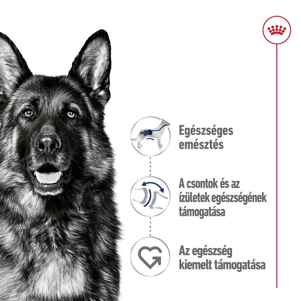 A ROYAL CANIN Maxi Adult falatok pecsenyelében egy táplálási szempontból teljes értékű és kiegyensúlyozott nedves eledel, amelyet kifejezetten nagytestű kutyája sajátos igényeinek kielégítésére, illetve felnőttkori évei alatt történő támogatására terveztek. Ez az eledel megfelelő a nagytestű kutyáknak, 26 és 44 kg között, 15 hónapos kortól.