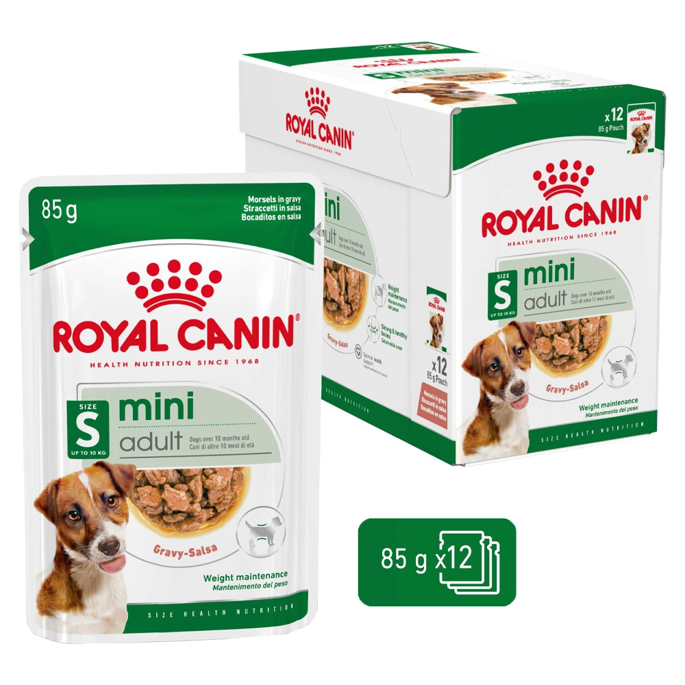 A ROYAL CANIN Mini Adult falatkák pecsenyelében egy táplálási szempontból teljes értékű és kiegyensúlyozott nedves eledel, amelyet kifejezetten kistestű kutyája sajátos igényeinek kielégítésére, illetve felnőttkori évei alatt történő támogatására terveztek. Ez az eledel megfelelő a kistestű kutyáknak, legfeljebb 10 kg testsúlyig, 10 hónapos kortól.
