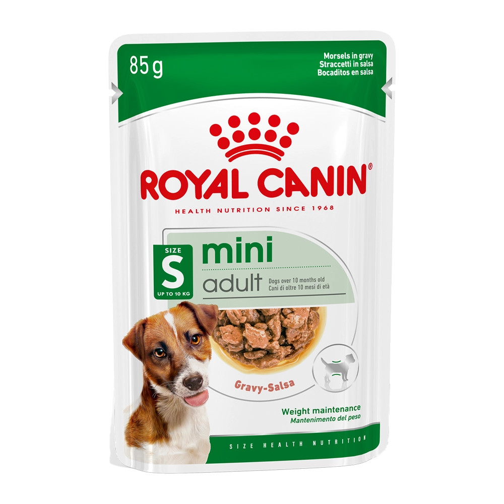 A ROYAL CANIN Mini Adult falatkák pecsenyelében egy táplálási szempontból teljes értékű és kiegyensúlyozott nedves eledel, amelyet kifejezetten kistestű kutyája sajátos igényeinek kielégítésére, illetve felnőttkori évei alatt történő támogatására terveztek. Ez az eledel megfelelő a kistestű kutyáknak, legfeljebb 10 kg testsúlyig, 10 hónapos kortól.