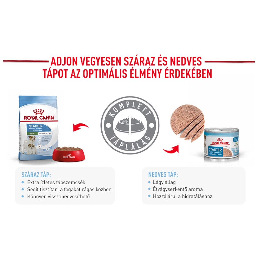 A ROYAL CANIN Starter Mousse Mother & Babydog tápot kifejezetten a vemhes és szoptató anyakutyák és legfeljebb 2 hónapos korú, elválasztás alatt levő kölyökkutyáik tápanyagszükségleteit szem előtt tartva fejlesztettük ki.