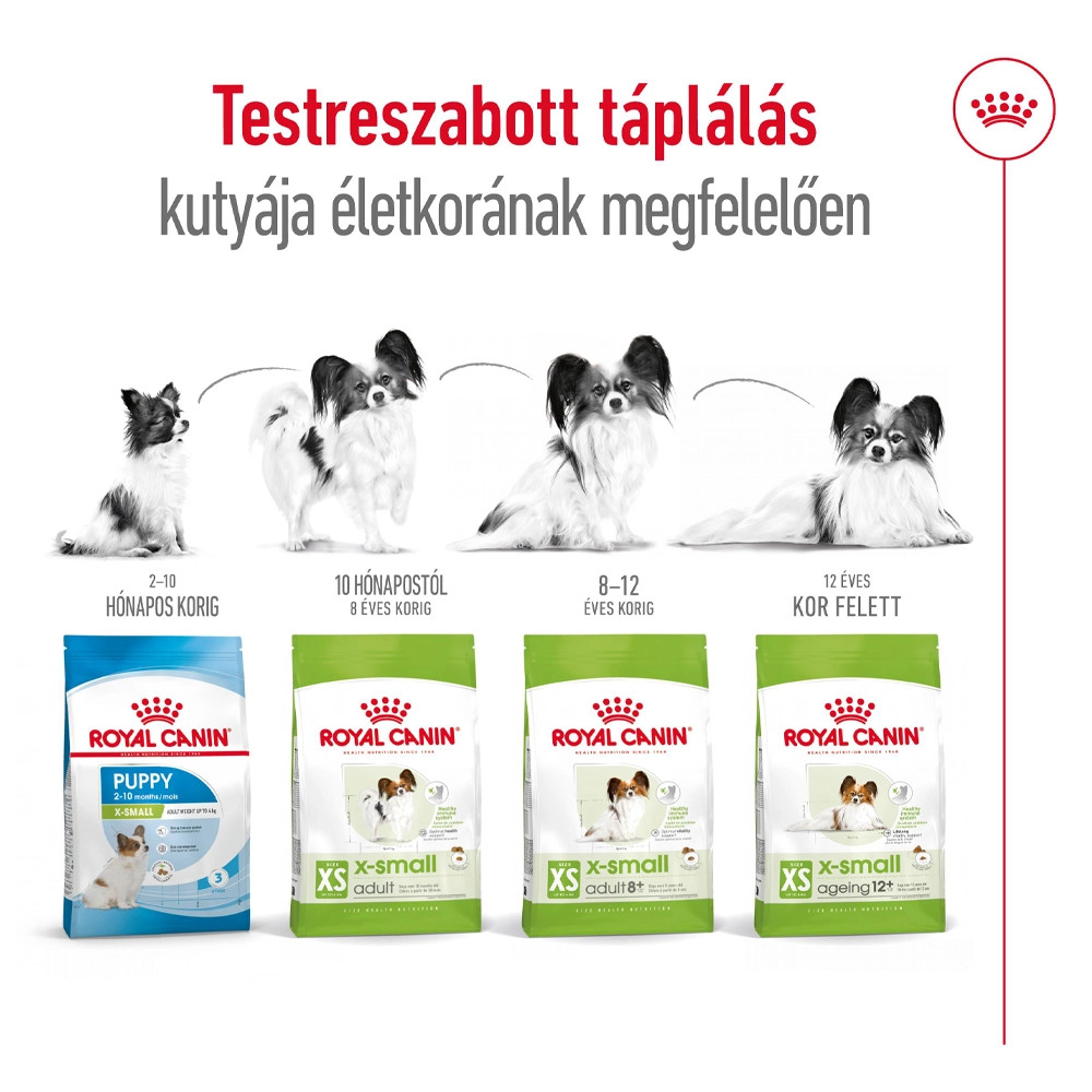 A ROYAL CANIN X-Small Adult egy táplálási szempontból teljes értékű és kiegyensúlyozott formula, amelyet kifejezetten a nagyon kistestű kutyák sajátos igényeinek kielégítésére, illetve a felnőttkori évei alatt történő támogatására terveztek.