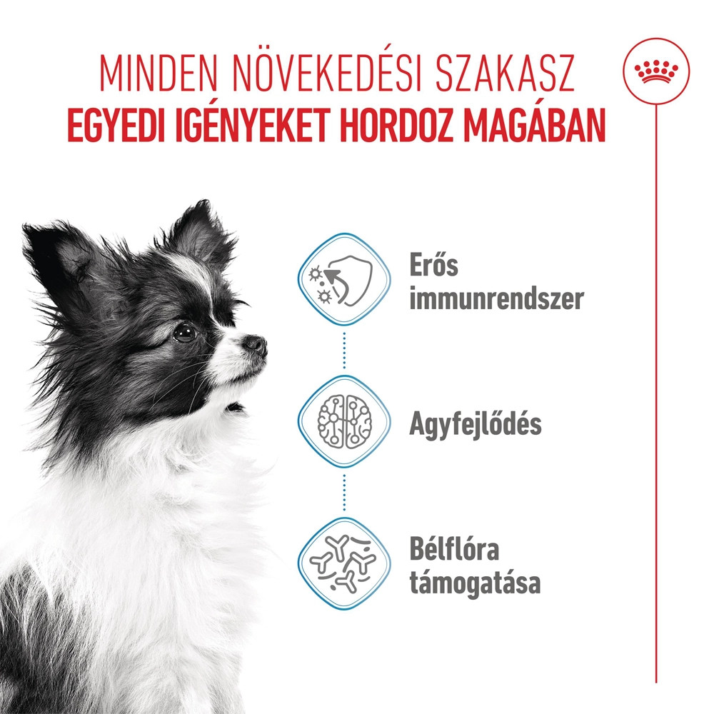 Tudta, hogy a kölyökkutyák tápanyagszükséglete változik, ahogy növekednek? Mire kölyökkutyája eléri a 10 hónapos kort, olyan étrendre van szüksége, amely egyedileg igazított, hogy megfeleljen a tápanyagszükségleteinek felnőtt kutyaként. Ebben a szakaszban át lehet térni a ROYAL CANIN X-Small Adult tápra.